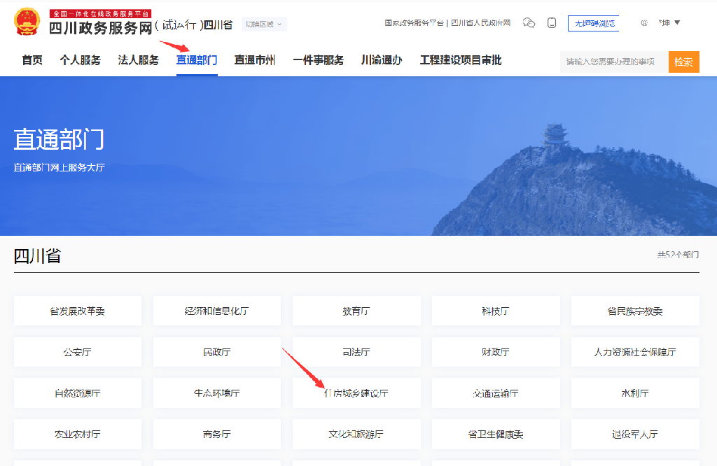 3.登录成功后,点击“直通部门”“住房城乡建设厅”。